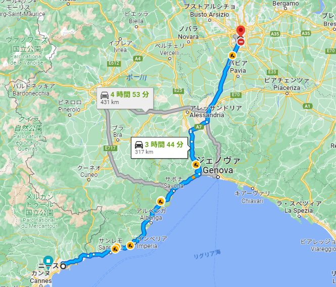 例えばニースにいたらちょっとそこまで、とイタリアのミラノまで行けちゃいますね。